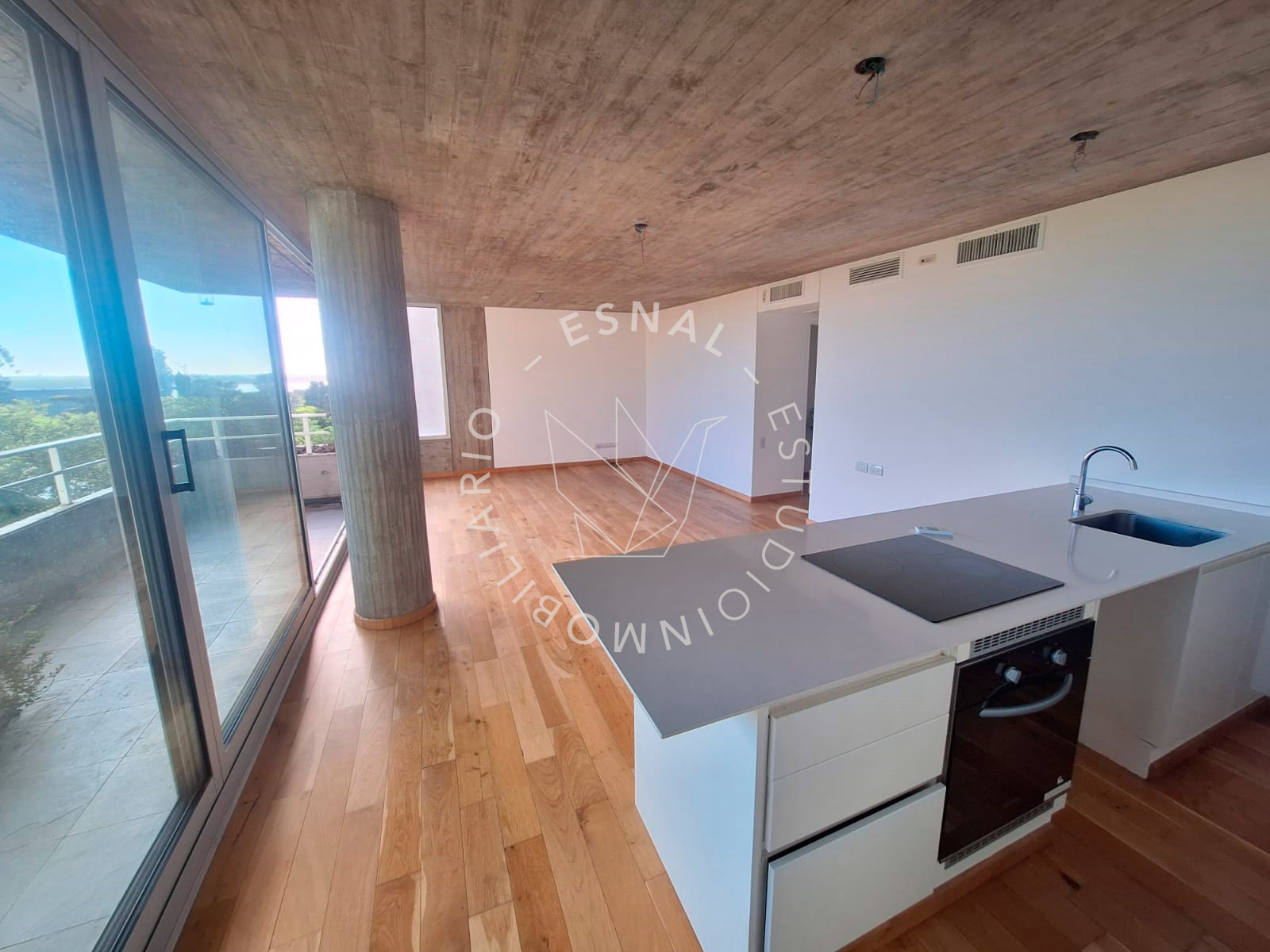 Ingreso a living comedor de amplias dimensiones, cuenta con cocina integrada con horno y anafe vitrocerámico eléctricos, hermosa mesada de silestone blanco y amplio espacio de guardado. Lavadero independiente sectorizado.