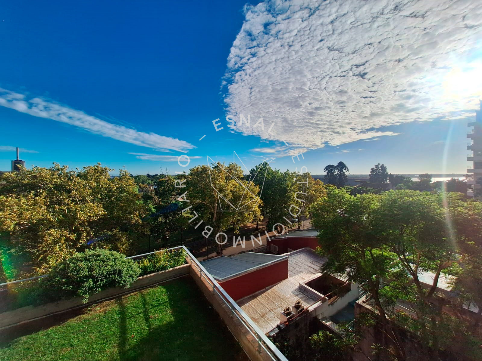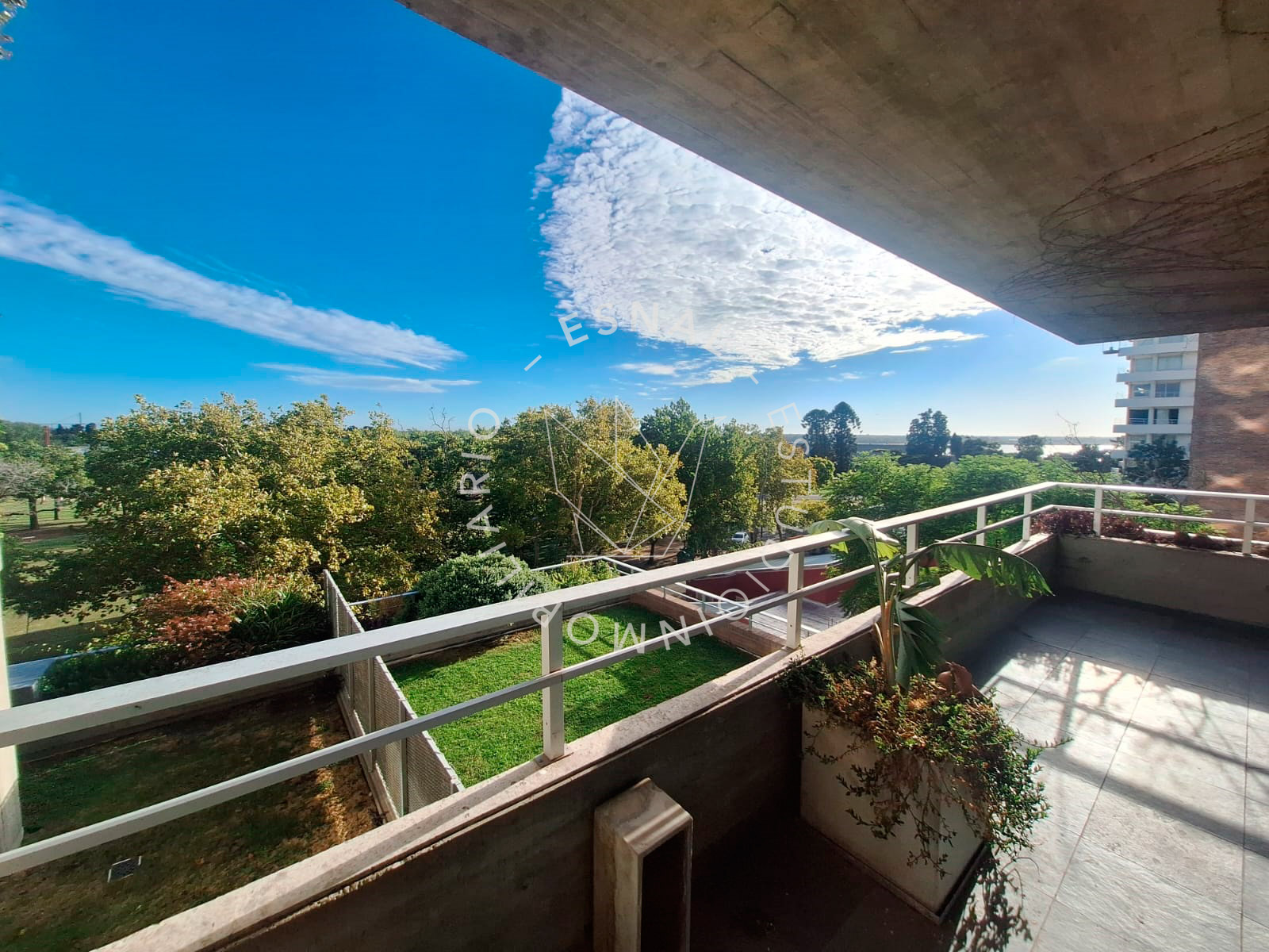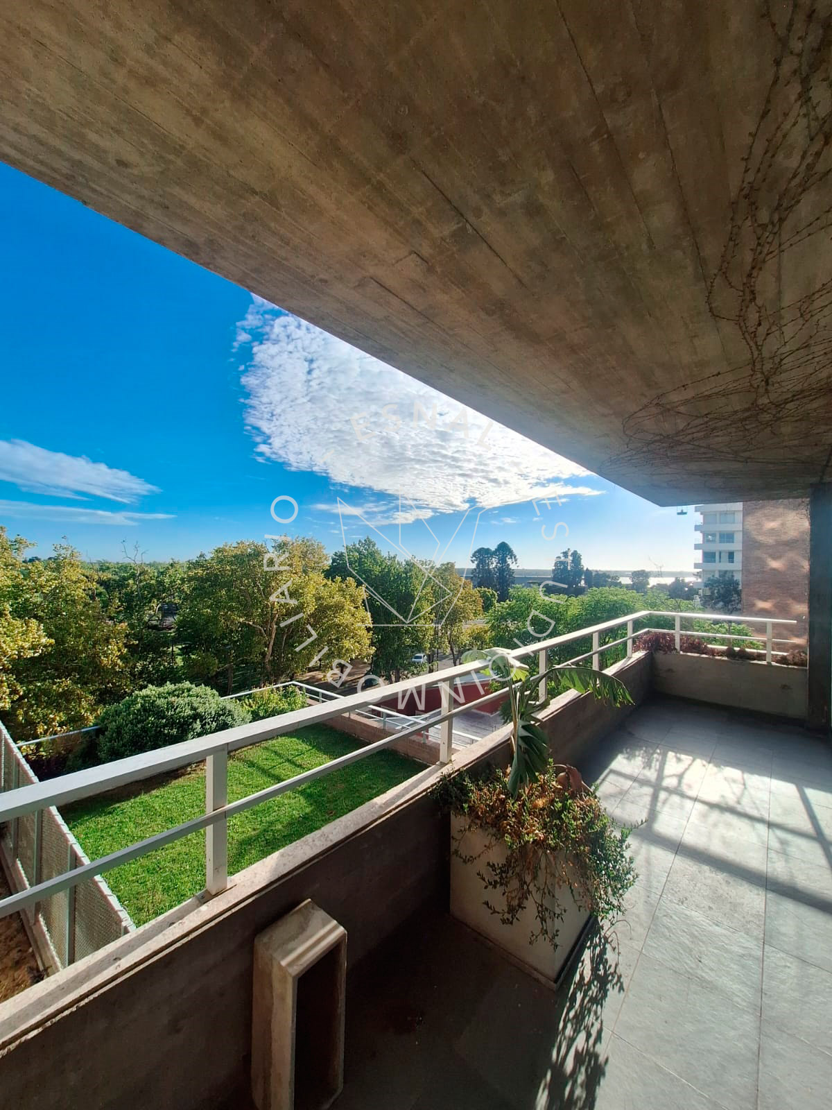 Gran balcón terraza con vista despejada al parque Alem, acuario de la ciudad y rio Paraná.