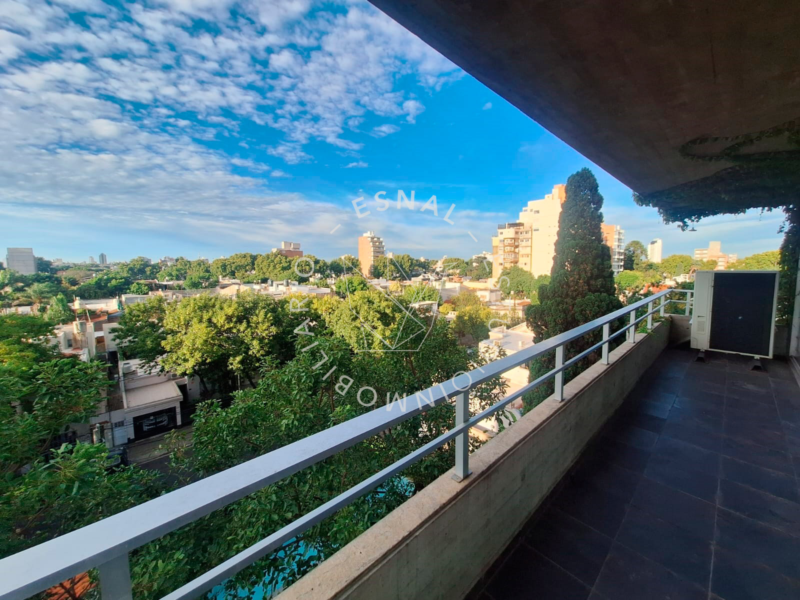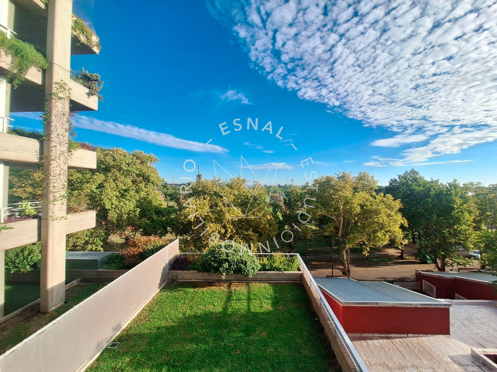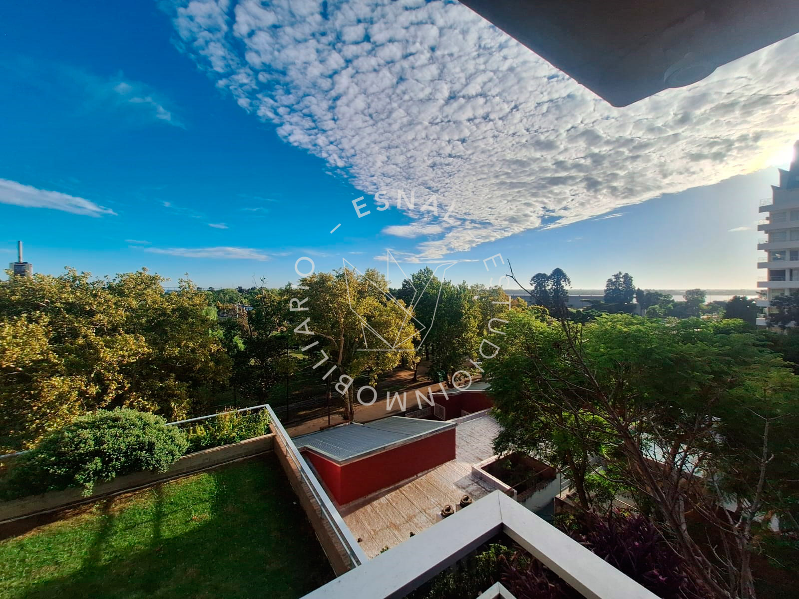 Gran balcón terraza con vista despejada al parque Alem, acuario de la ciudad y rio Paraná.
