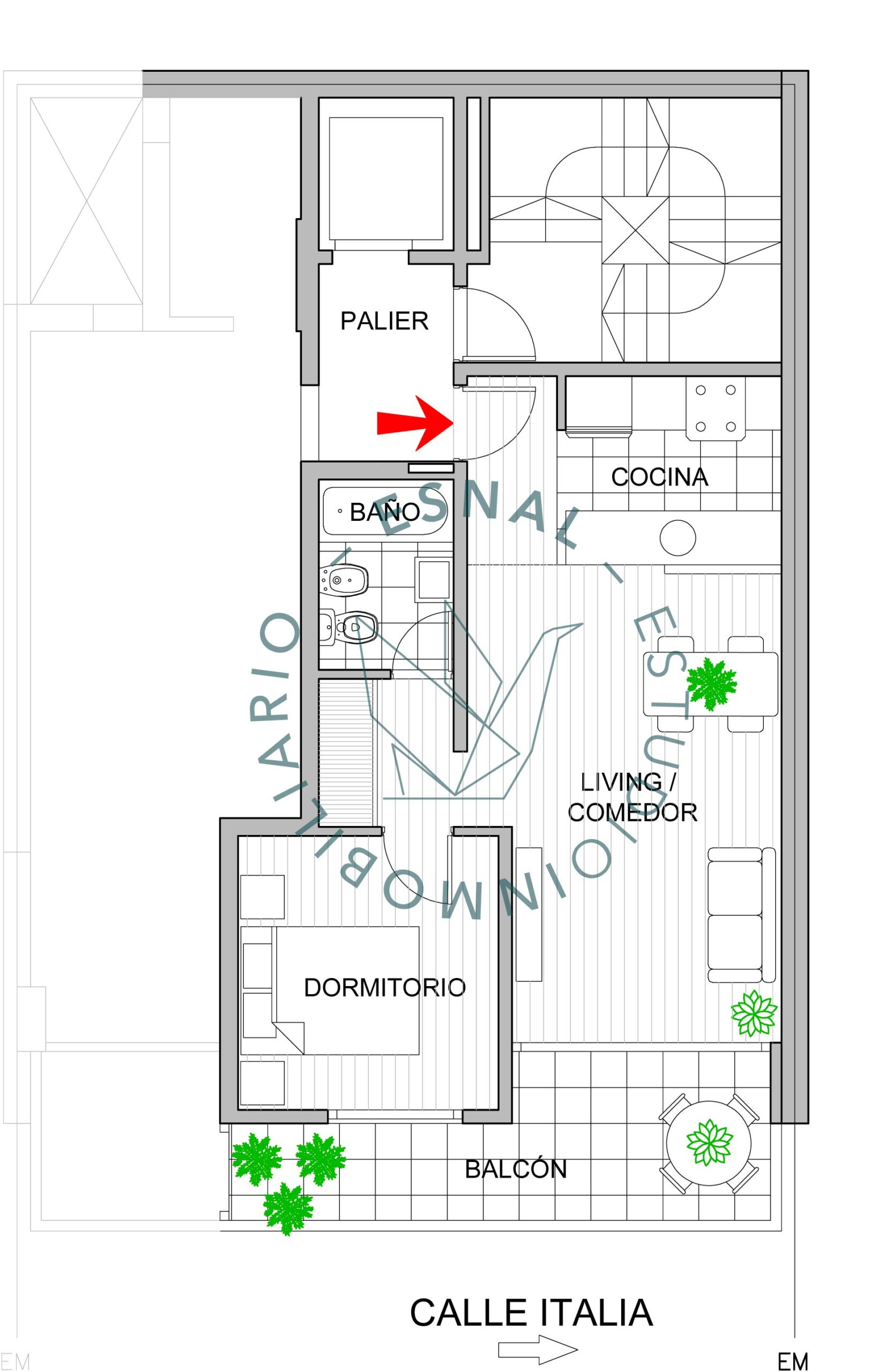 Departamento en venta en el Centro a pocas cuadras de Oroño y del rio Parana, ideal para vivienda. Cuenta con 2 ambientes bien distribuidos, 1 dormitorio y 1 baño. La propiedad, de 41 m² de superficie cubierta y 51 m² de superficie total, ofrece un amplio living comedor con cocina integrada a traves de una barra, con conexion para lavarropas, gran ventanal de piso a techo de salida al balcón terraza al frente de 10 m2 sobre calle Italia con orientación Este, que garantiza excelente iluminación natural.